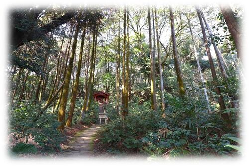 吉五郎稲荷。 小牧山には山中を周遊する散策コースが幾つかあり、今回掲載する吉五郎稲荷は、大手道から左に伸びる自然満喫コースの途中に鳥居を構えています。 小牧山稲荷神社の社頭右から鳥居が見える距離にあります。