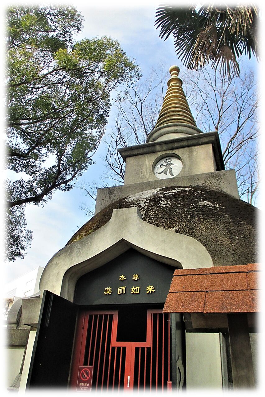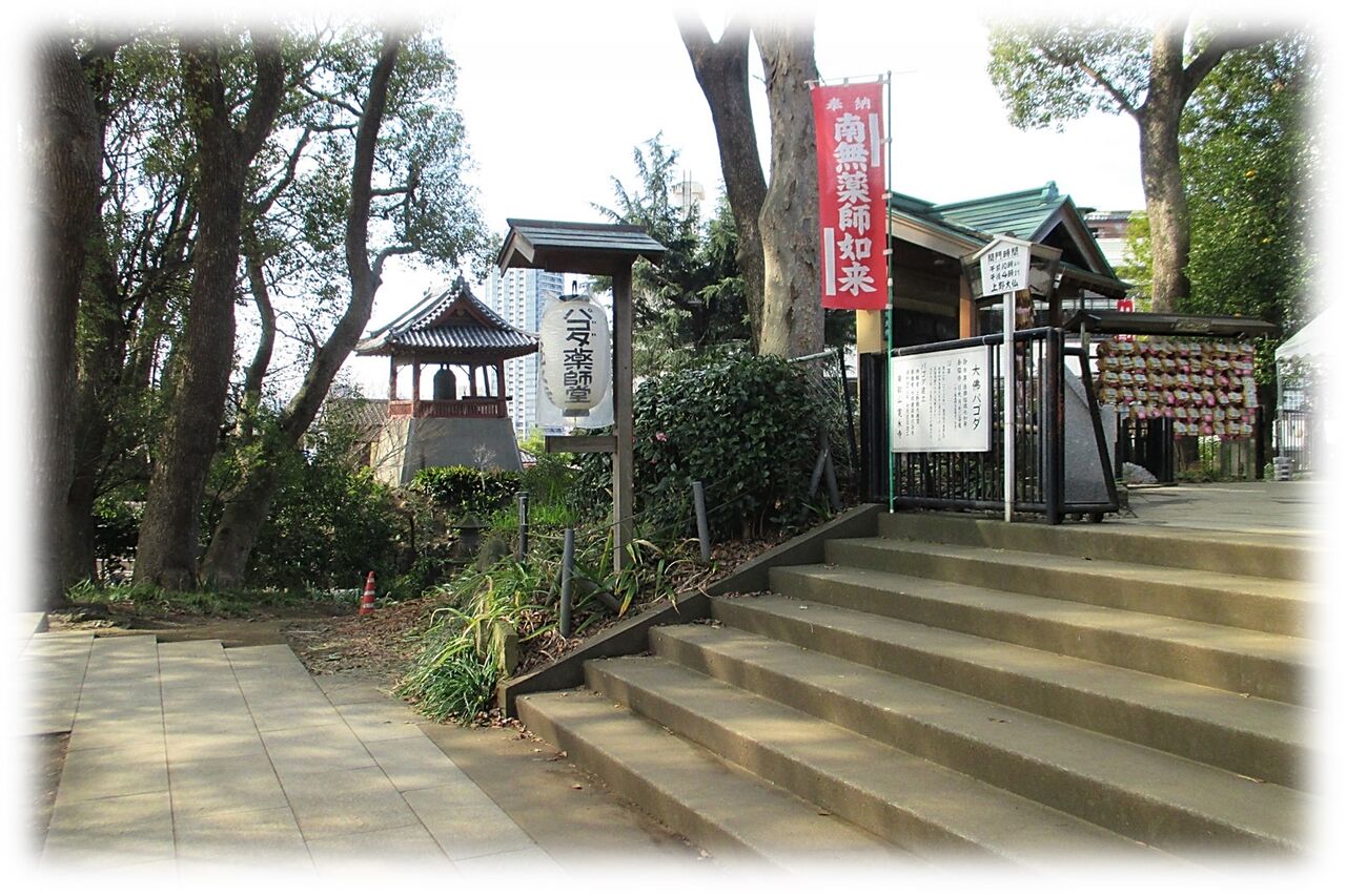 パゴダと呼ばれる仏塔だそうだ、内部に薬師如来、脇侍の左側の月光菩薩、右側の日光菩薩像は旧上野東照宮にあった薬師堂のご本尊とある。