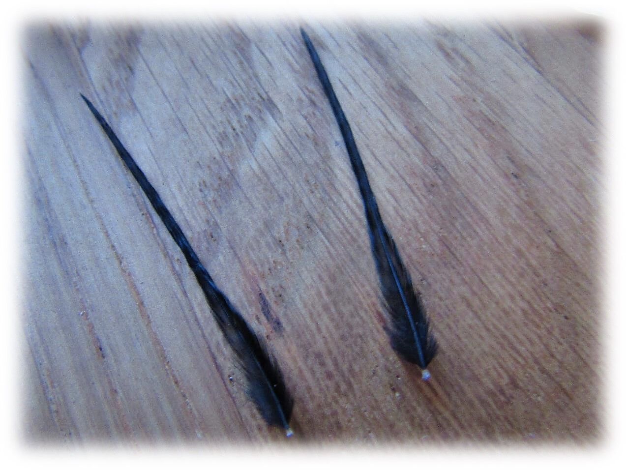 二枚目の羽も同じ要領でぐるぐると巻き、毛むくじゃらにして糸縛り器巻き留めますが、縛り目は1枚目に以上に何回〃も巻き留めます、接着剤で固めないので2枚目の縛りはしっかりと。