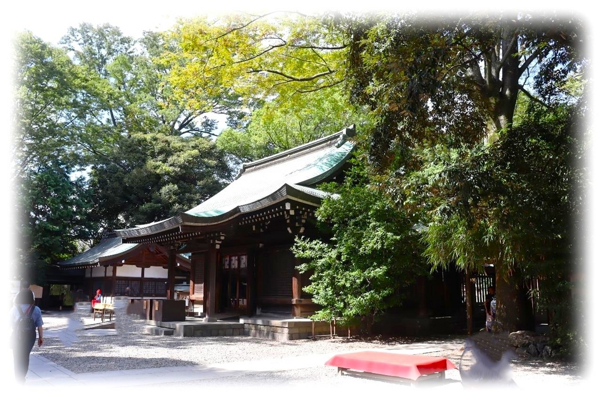 社地は新河岸川の右岸の杜に鎮座し、広い社地の半分が社殿、残りは会館が占めており、当日七五三の御祈祷に訪れた家族連れと大陸系の観光客が多かった。